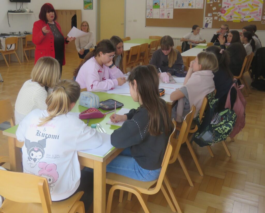 Radionicu kreativnog pisanja Šaputanje stvari: Što čujem kad tehnologija utihne? održala je za drugaše i trećaše učiteljica hrvatskog jezika Marina Strukan.