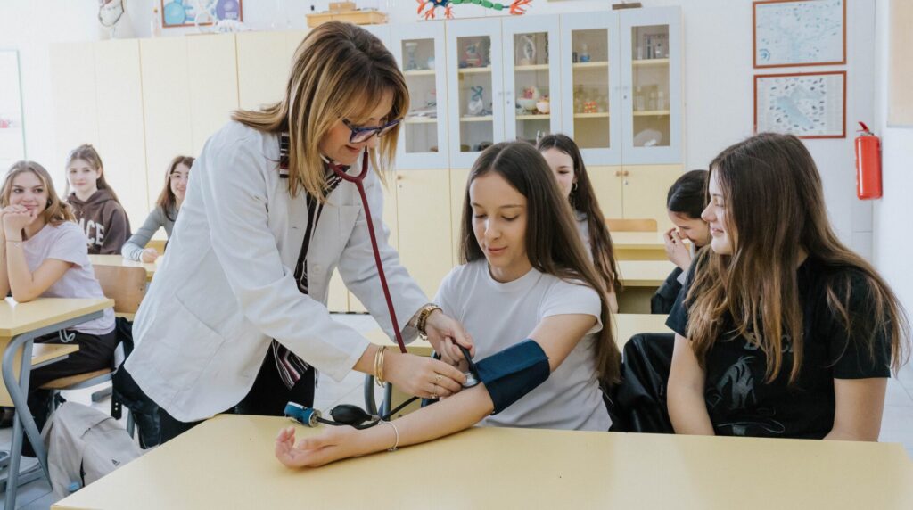 Predavanje Zdravlje uz mjerenje tlaka, šećera i kisika u krvi održala je za učenice sedmih i osmih razreda gošća Martina Kuzmanić, dr. med., specijalistica obiteljske medicine.