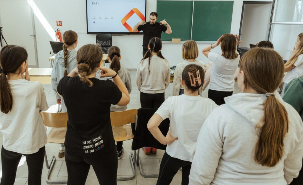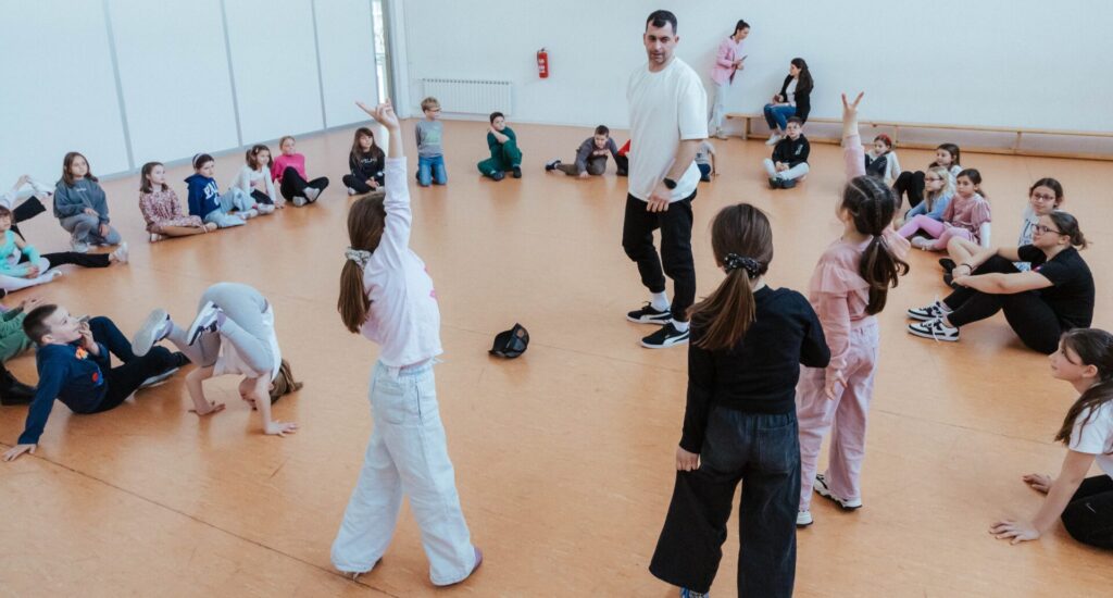 Plesnu radionicu za zainteresirane i rasplesane učenike prvih i šestih razreda vodio je Dario Marović.