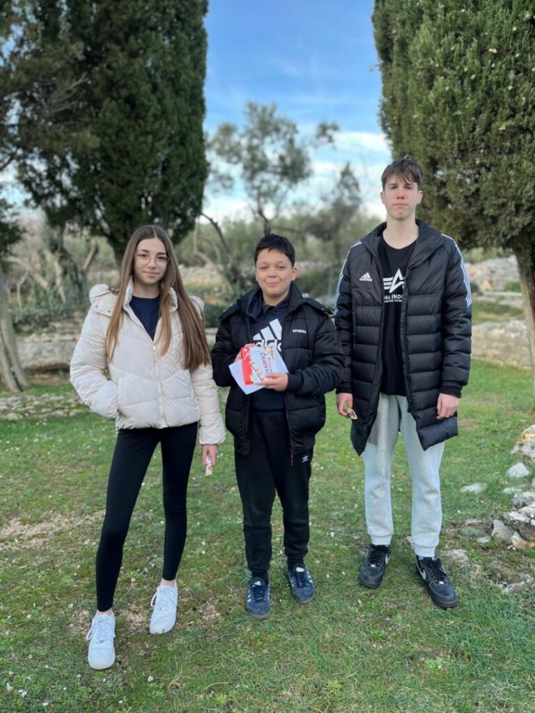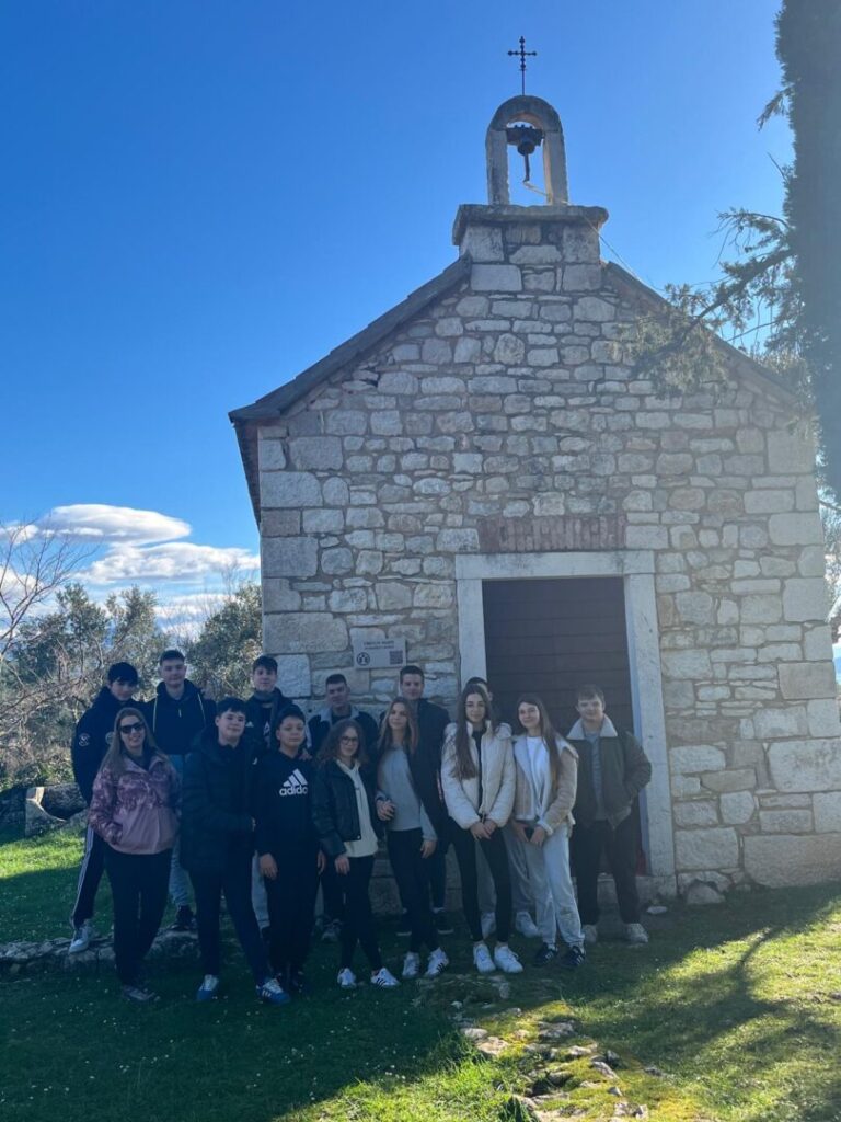 Povodom Dana grada Kaštela i Dana OŠ Bijaći, učenici 8. e razreda s razrednicom Tamarom Smokrović iskoristili su prvo lijepo, sunčano subotnje jutro nakon dugog kišnog razdoblja za posjet crkvi sv. Marte i Bijaćima, jednom od najznačajnijih lokaliteta hrvatske srednjovjekovne povijesti, po kojem naša škola nosi ime. Ovaj kratki izlet bio je edukativnog i zabavnog karaktera, a učenici su kroz radionice imali priliku učiti u prirodnom okruženju i na autentičnom povijesnom prostoru. Aktivno su sudjelovali u istraživačkim i prezentacijskim zadacima te su, radeći u manjim skupinama, pripremali kratka izlaganja prema unaprijed zadanim temama: knez Trpimir i Trpimirova darovnica, srednjovjekovna Hrvatska, povijest Kaštela, crkva sv. Marte te geografski položaj Kaštela. Tijekom izlaganja pokazali su znanje, istraživački duh i timski rad, a najuspješniji su za svoj trud i prezentaciju nagrađeni slatkim poklonima. Sunčano vrijeme, povijesni ambijent i učenje na otvorenom pridonijeli su izvrsnom raspoloženju cijelog razreda. Učenicima se posebno svidjelo učenje u prirodi pa su već počeli dogovori za novi zajednički izlet.