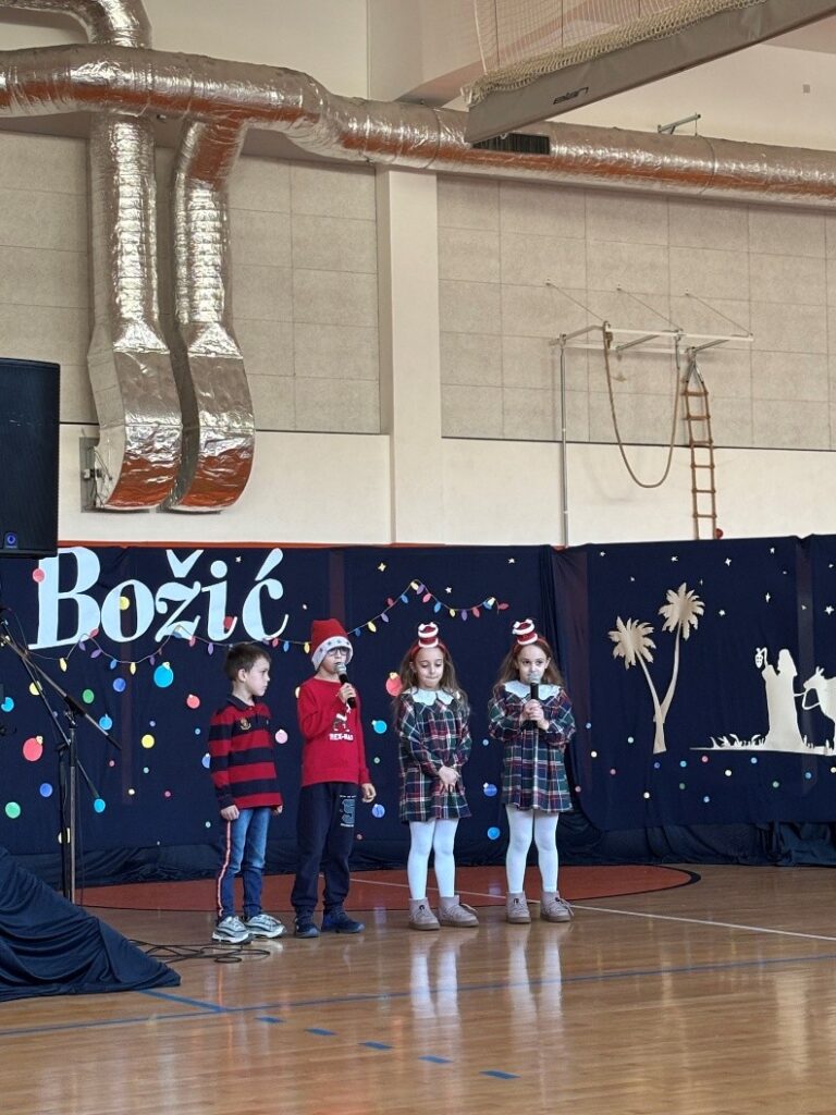 Program su otovorili učenici 1. a razreda recitacijom Što je donio sveti Nikola i tako unijeli posebnu čar i razigranost. Slijedila je emotivna recitacija Božić u duši 2. c razreda. Nakon toga, dvoranom je snažno odjeknula pjesma Biram ljubav u izvedbi 2. d razreda, podsjetivši nas na istinske vrijednosti Božića. Posebnu pažnju privukao je igrokaz Veliko čudo za mali bor u kojem su učenici 3. a razreda kroz glumu i tekst prenijeli dirljivu poruku o ljubavi, nesebičnosti i malim čudima. Nastavak programa obilježile su recitacije 3. c razreda Sretan Božić i pjesma Cimet i čaj 3. d razreda koje su dodatno ugrijale srca svih prisutnih.