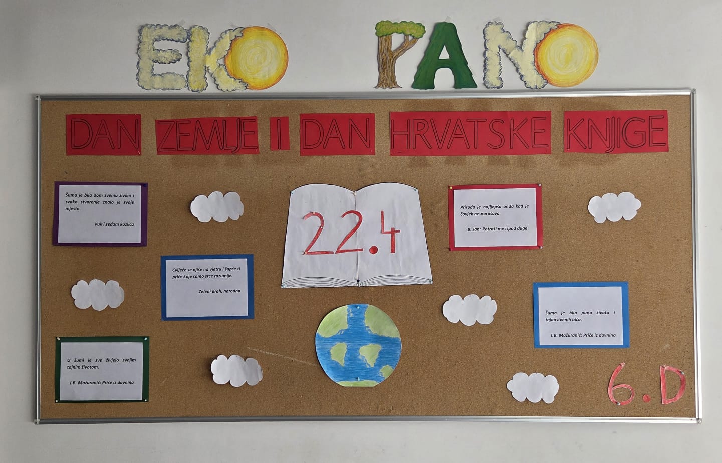 Dana 22. travanja obilježava se Dan planeta Zemlje, dan kada pojedinac ima mogućnost i jedinstvenu priliku za izgradnju nove, bolje budućnosti, dan kada smo pozvani da preispitamo svoje životne navike i da bar nakratko iziđemo iz svoje komforne zone te učinimo velik korak za naš planet. Važno je temeljiti razvoj Zemlje na načelu održivog razvoja, učinkovitije upotrebljavati resurse, razviti okolišnu i energetsku učinkovitost te zelenu ekologiju sa svrhom kontrole klimatskih promjena i emisije štetnih stakleničkih plinova. Cilj je svakako potaknuti kolektivnu svijest vlastitim primjerom o problemu onečišćenja okoliša, educirati druge o problemima brojnim člancima, radionicama, letcima, uspostaviti kontakt s prirodom, promovirati štednju energije za sigurniju budućnost, reciklirati, sortirati i pravilno odlagati otpad.