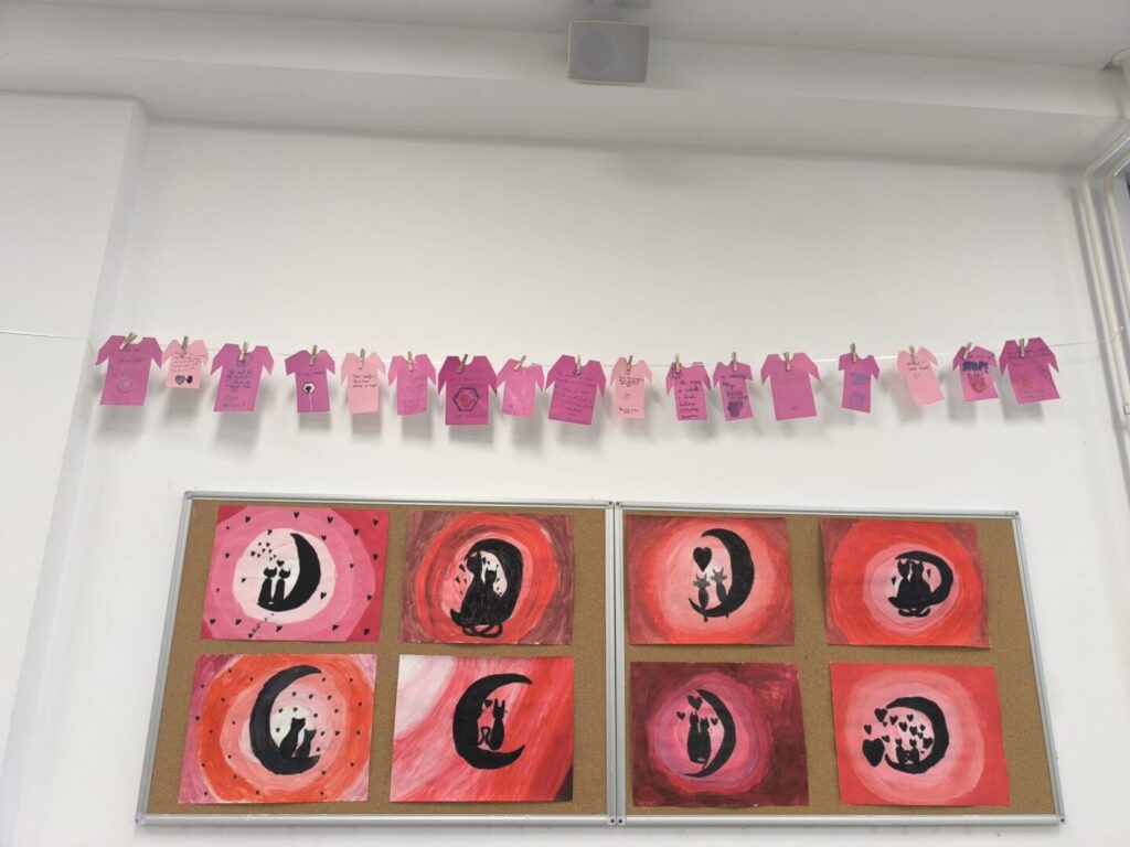 U našoj školi, ovaj je dan obilježen postavljanjem prigodnog panoa. U izradi panoa sudjelovali su učenici 1.b razreda na satu engleskog jezika s učiteljicom Larom Mrđen, učenici 2.c razreda s učiteljicom, učenici produženog boravka 1.d, 2.d i 3.d razreda sa svojim učiteljicama te učenice 7.b razreda Anđela Barišić, Mia Matijaš, Petra Lovrić i Iva Filipović u suradnji s pedagoginjama.