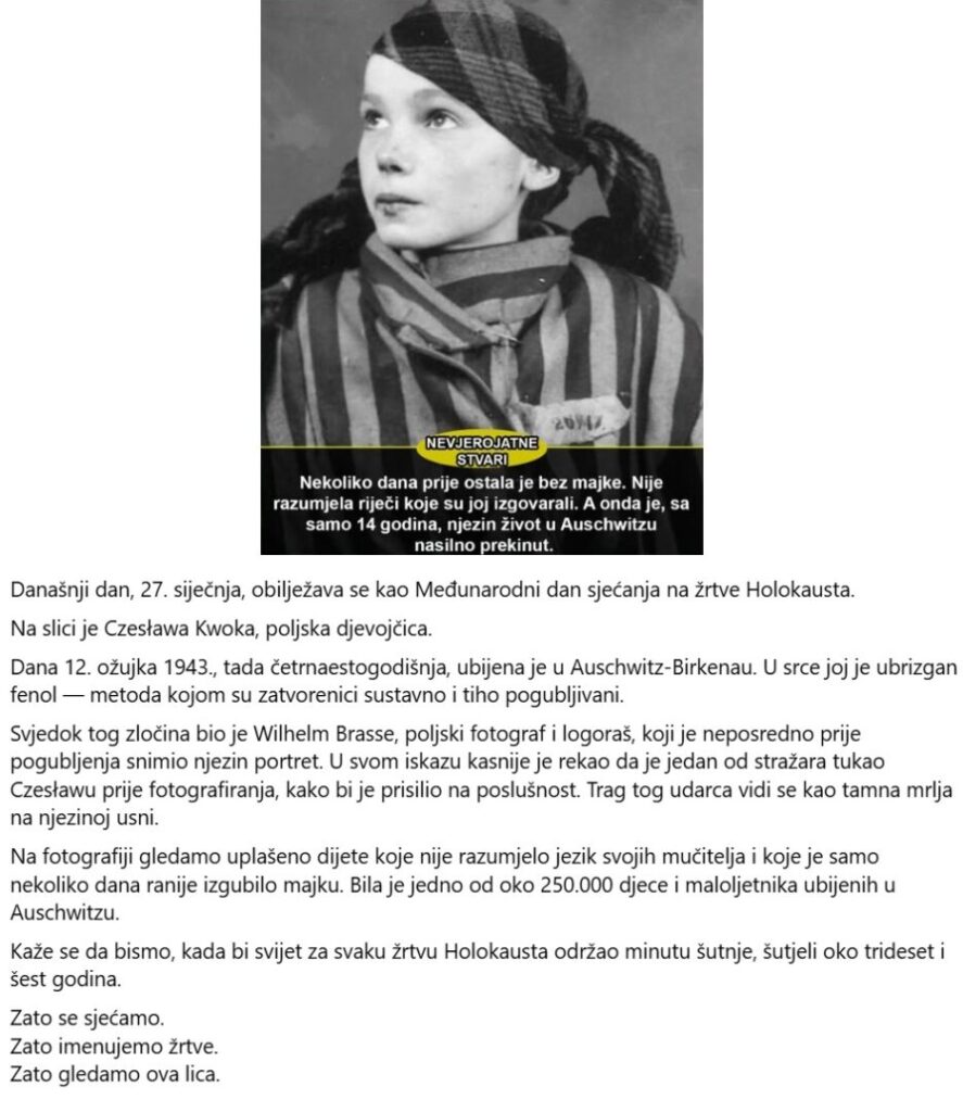 Naime, aktivnosti se provode s ciljem promoviranja kulture mira i nenasilja, tolerancije i uvažavanja različitosti s naglaskom na obilježavanje Međunarodnog dana sjećanja na žrtve holokausta 27. siječnja. Ovaj se Dan obilježava s ciljem očuvanja sjećanja na žrtve holokausta te razvijanja empatije, tolerancije i odgovornog odnosa prema sprječavanju svih oblika nasilja i stradavanja.