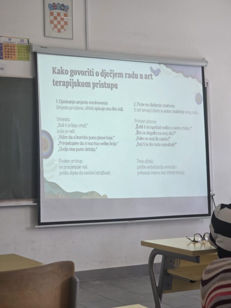 Godišnjim planom rada predviđene su aktivnosti koje su u Tjednu kreativnosti (16. – 20. ožujka 2026.) „ušle u finale“ na način da su izloženi učenički radovi, organizirane kreativne radionice i edukacija učitelja (nositelja projekta). Pozvani predavač je bila Josipa Milović, mag. psych., univ. spec. art. therap. s temom: Primjena kreativnih tehnika i elemenata art terapije u radu s djecom. Osim teoretskog dijela, edukacija je uključivala i praktičnu primjenu prezentiranog. Kreativnost je bila na zavidnoj razini, a radovi učitelja krase predvorje škole.