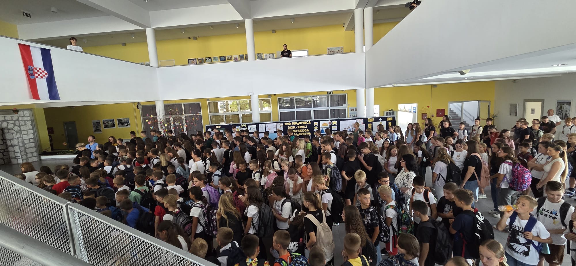 U ponedjeljak, 8. rujna 2025., ponovno su se otvorila vrata naše škole za još jednu nastavnu godinu. Prvi nastavni dan započeo je okupljanjem učenika i djelatnika u predvorju, gdje smo poslušali himnu Lijepa naša domovino, što je pridonijelo svečanom ozračju. S osmijehom i uzbuđenjem krenuli smo u nove izazove i prilike za učenje.