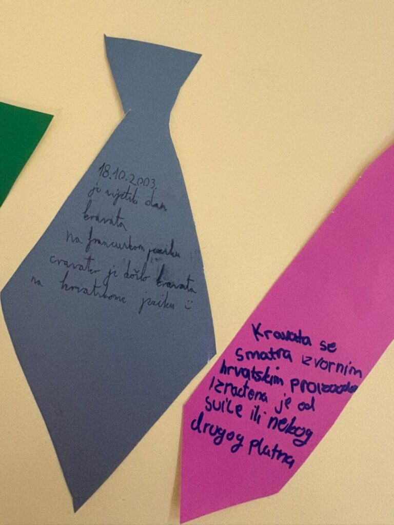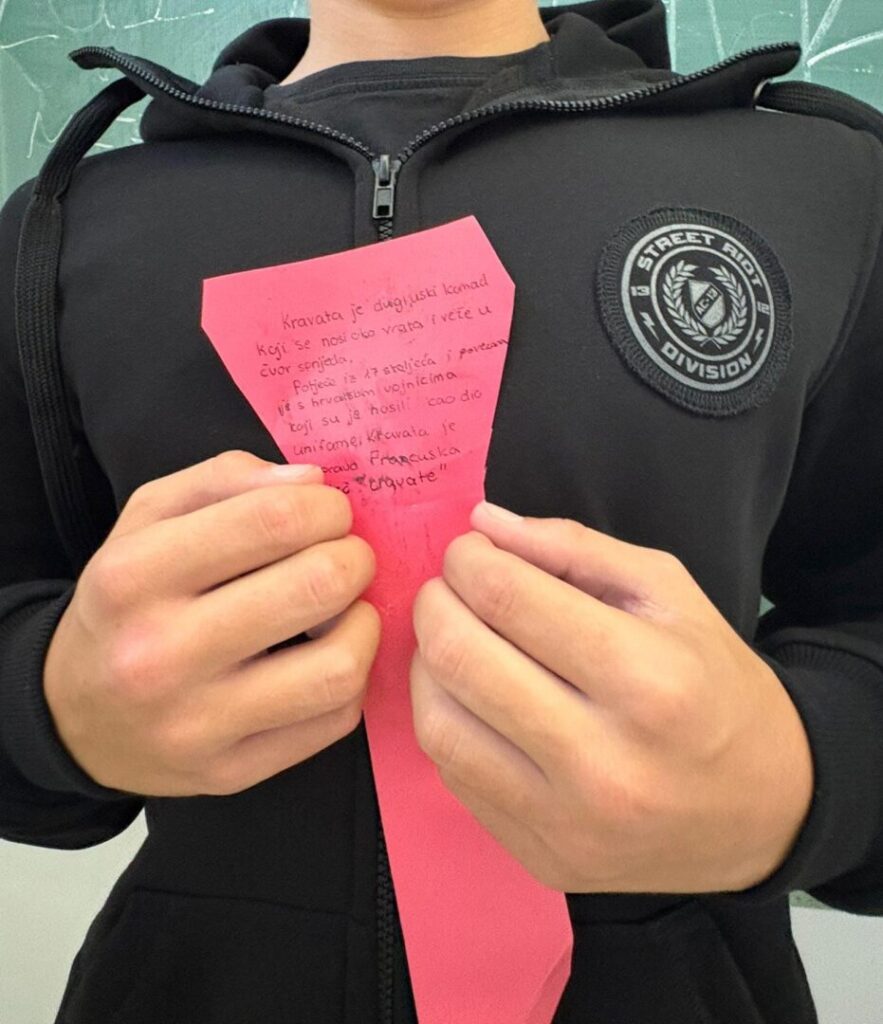 I učenici naše škole pridružili su se obilježavanju vog dana. Učenici su taj dan u školu došli noseći kravate, a kroz likovne radove i aktivnosti slavili su povijest i simboliku ovog modnog dodatka. Time smo pokazali koliko cijenimo našu baštinu i koliko je kravata inspirativna i u modernom dobu.