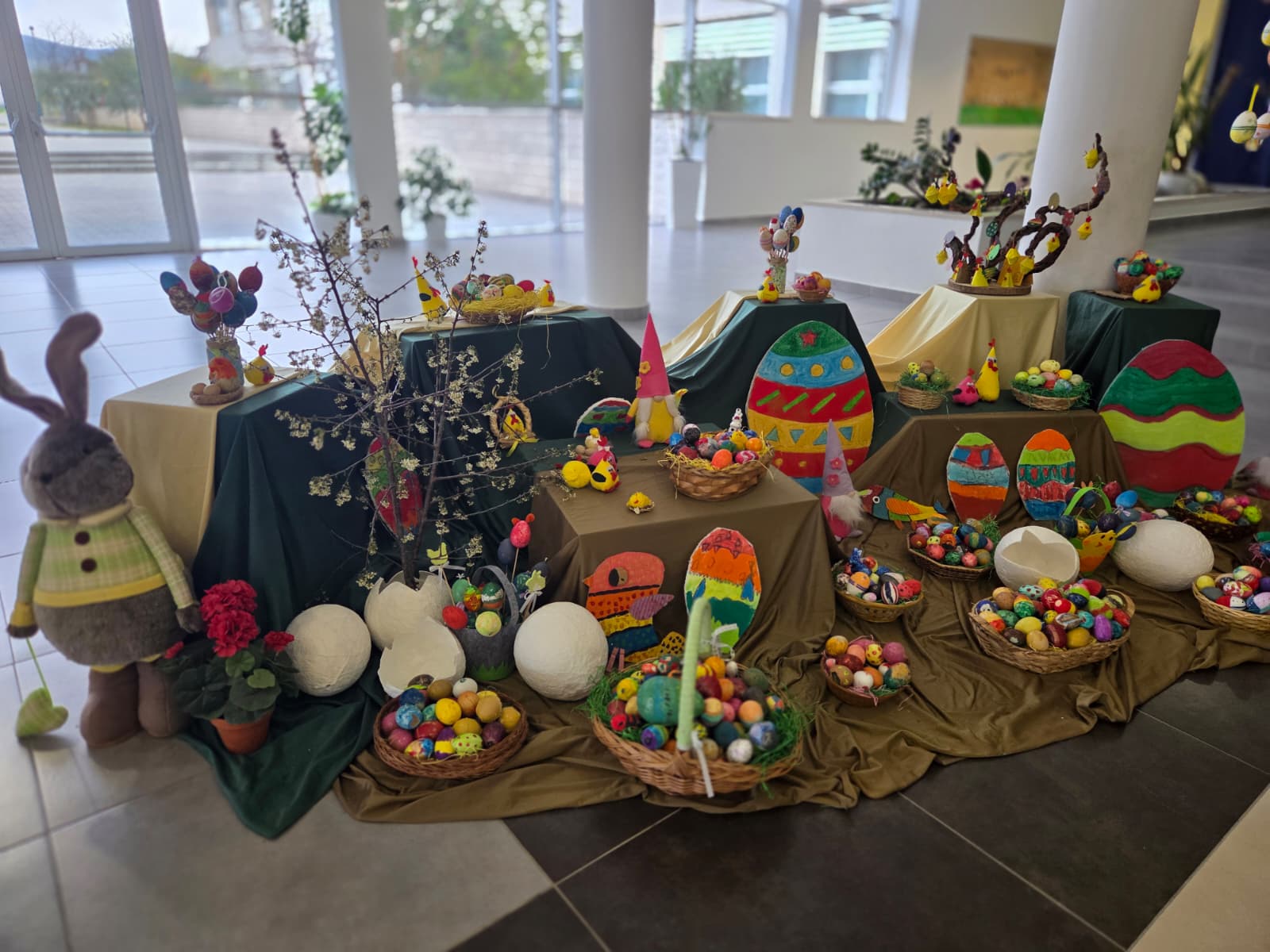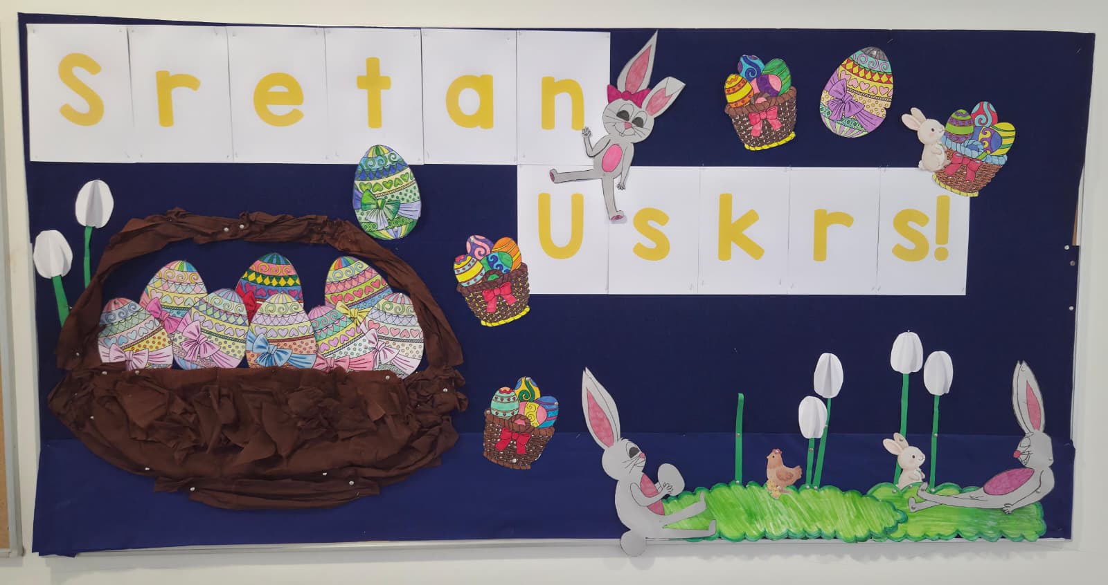 Posebnu pažnju privlače maštovito ukrašene pisanice, košarice prepune raznobojnih jaja te prigodne dekoracije koje simboliziraju novi život, radost i nadu. Učenici su s velikim veseljem sudjelovali u izradi ukrasa, pokazujući svoju kreativnost i zajedništvo, dok su učitelji svojim idejama i vodstvom dodatno obogatili cijeli prostor.